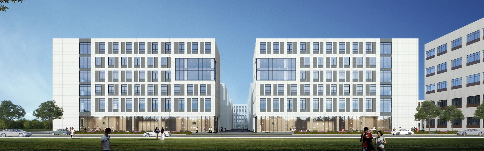 三層分層、三層半以及四層雙拼花園式廠房、研發樓
